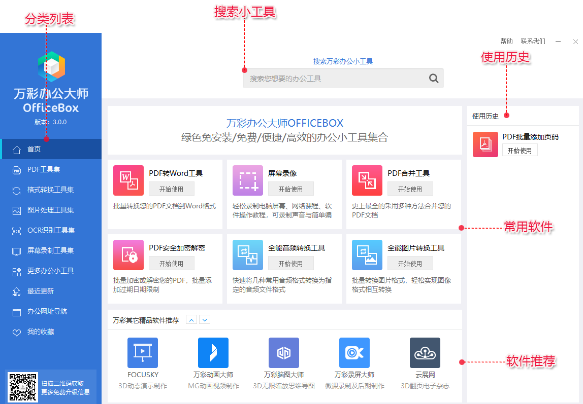 萬彩辦公大師officebox是一款內(nèi)置超多強(qiáng)大小工具集合的一款辦公軟件,內(nèi)置【PDF工具】/【萬能格式轉(zhuǎn)換】/【識別工具】/【圖片處理】等,全部都可以免費(fèi)使用,并且這款萬彩辦公大師的體積很小,不會占用太多磁盤空間,不會有任何廣告,內(nèi)置很多辦公組件的辦公軟件良心作品萬彩辦公大師OfficeBox你值得擁有!