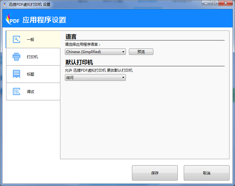 修改迅捷PDF虛擬打印機的文件輸出格式
