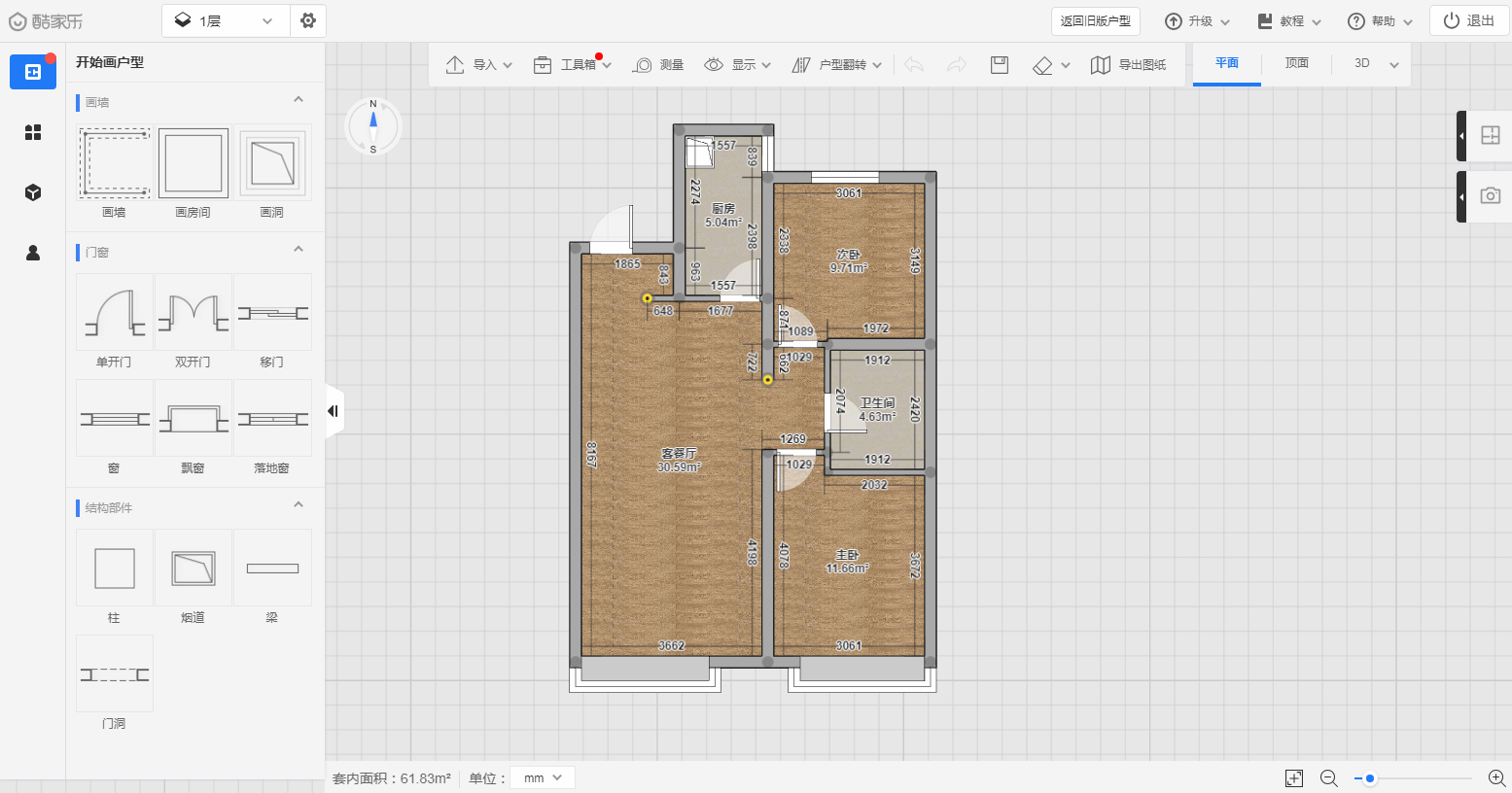 戶型工具就是創(chuàng)建戶型的工具。因為戶型是裝修設(shè)計的載體,所以創(chuàng)建戶型是必不可少的一步??峒覙返膽粜蛣?chuàng)建比較方便,您可以通過搜索戶型圖、導(dǎo)入CAD文件、導(dǎo)入臨摹圖、自己畫戶型等四種方法來創(chuàng)建。建議大家使用搜索戶型圖的方式,如下圖。