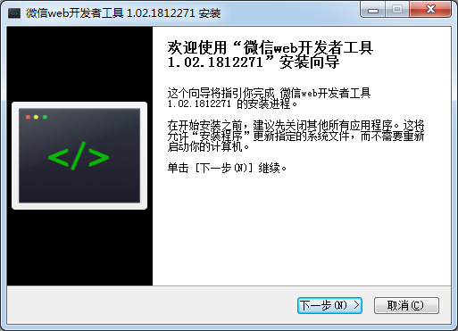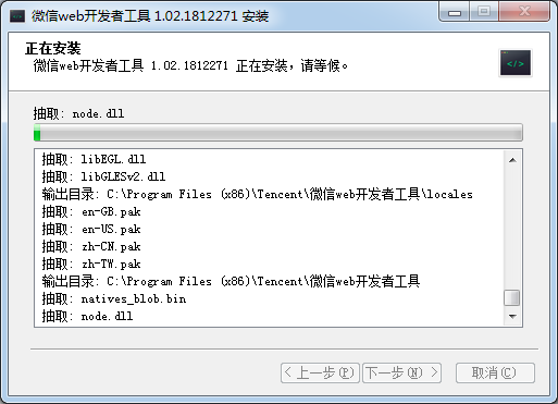 微信web開發(fā)者工具1.02. 1812271正在安裝,請等候。