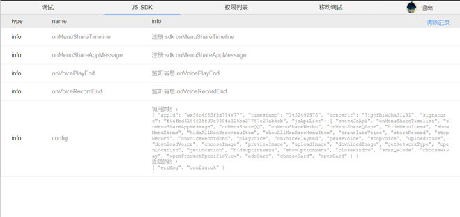 2、調(diào)試、檢測網(wǎng)頁頁面的JS-SDK有關(guān)功能與管理權(quán)限,仿真模擬絕大多數(shù)SDK的鍵入和輸出
