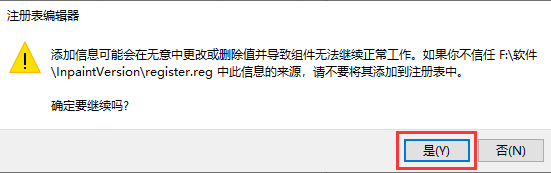 3、運(yùn)行后會(huì)彈出注冊(cè)表編輯器選型,我們點(diǎn)擊是,就可以成功將該程序添加到注冊(cè)表中。