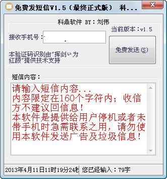分享一款可以在電腦上免費(fèi)發(fā)送短信的小工具,該工具綠色無毒,安全免費(fèi)。只需要輸入手機(jī)號碼即可向該號碼發(fā)送短信~是一款非常好用,匿名發(fā)送短信的好軟件~有需要的朋友可以下載使用。因防止惡意使用本軟件,軟件不提供自動驗(yàn)證功能,驗(yàn)證碼設(shè)置復(fù)雜,請耐心輸入完成