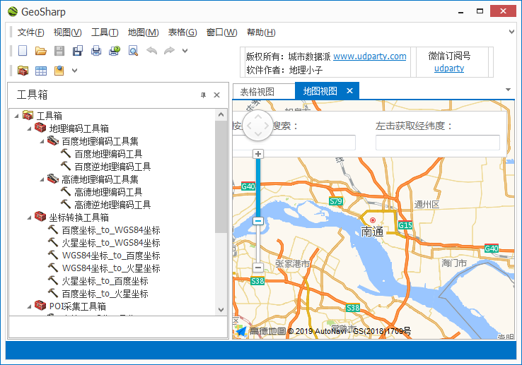 GeoSharp是一款功能比較強(qiáng)大的地圖數(shù)據(jù)采集工具,它的主要功能寶包括地理編碼工具集、BD、高德地理編碼工具集、坐標(biāo)轉(zhuǎn)換工具箱、POI采集工具箱、行政區(qū)劃信息采集工具箱,能以表格視圖及地圖方式查看,支持保存為EXCEL文件??梢园训刂沸畔⒔馕鰹榻?jīng)緯度,互相轉(zhuǎn)換百度、WGS84和火星坐標(biāo)系,解決所有主流電子地圖數(shù)據(jù)之間的坐標(biāo)轉(zhuǎn)換,同時(shí)還可以對所有類型的POI數(shù)據(jù)和天氣預(yù)報(bào)數(shù)據(jù)進(jìn)行采集。經(jīng)常整理地圖數(shù)據(jù)的朋友可以下載用用看。