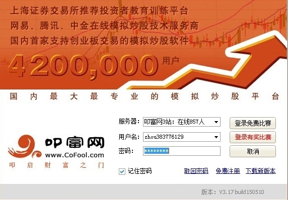 叩富網(wǎng)模擬炒股軟件是一款以真實(shí)行情為基礎(chǔ)的模擬資金炒股軟件,可以方便股票愛好者和初入股市的朋友學(xué)習(xí)進(jìn)階炒股,模擬炒股軟件完全免費(fèi),新增加高手追蹤的功能,可追蹤任意指定的高手的實(shí)時(shí)操作。軟件版的用戶和web網(wǎng)上交易的用戶名互相通用。用戶可結(jié)合證券行情分析進(jìn)行委托下單。