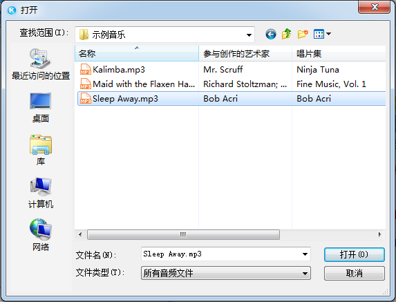 2.選擇要添加的音樂(lè),點(diǎn)擊打開(kāi)
