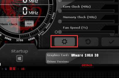 1.打開MSI Afterburner,點(diǎn)擊齒輪形狀的設(shè)置按鈕,進(jìn)入MSI Afterburner設(shè)定界面后,選擇:監(jiān)控;