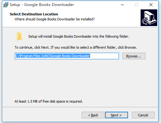 下載Google Books Downloader,解壓壓縮包,Select Destination Location