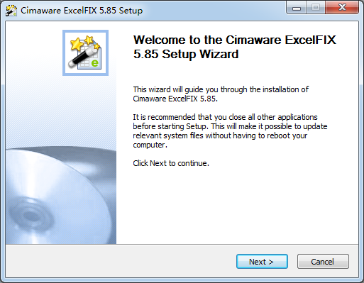 Please review the license terms before installing Cimaware ExcelFIX 5.85.