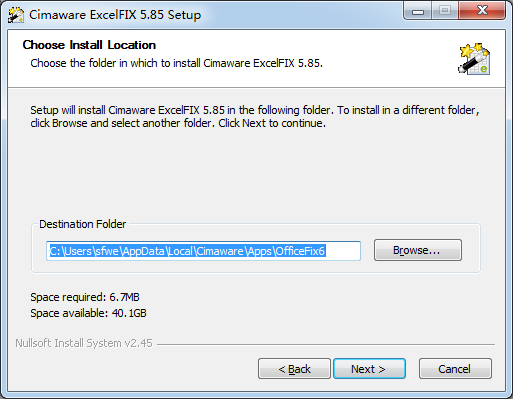 Setup will install Cimaware ExcelFIX 5.85 in the followving folder. To install in a different folder ,