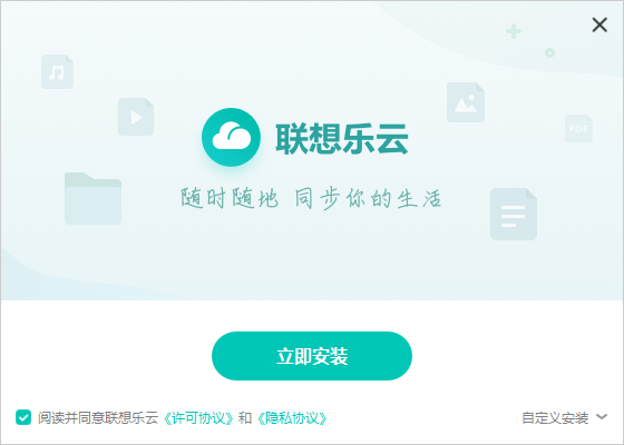 1.到本站下載安裝聯(lián)想樂云,打開安裝程序,點(diǎn)擊自定義安裝
