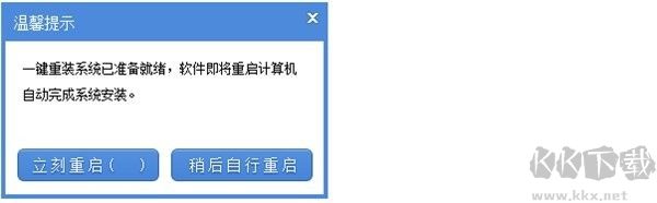 4、系統(tǒng)下載完成后進入 Win7 一鍵安裝環(huán)節(jié),彈出重啟提示框,點擊立刻重啟,自動完成安裝。
