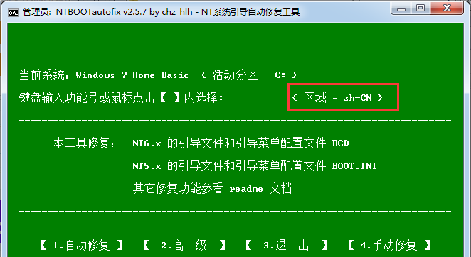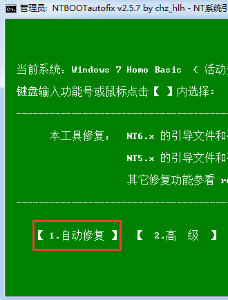1.打開NTBOOTautofix,選擇自動(dòng)修復(fù),按提示選擇1或者按鍵盤上的1 即可