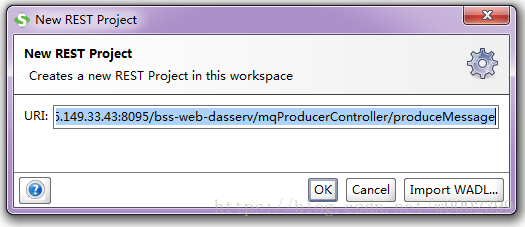同soap新建一樣,這里點(diǎn)擊rest,new rest project,這里的URI就是服務(wù)方提供的接口地址。點(diǎn)擊ok