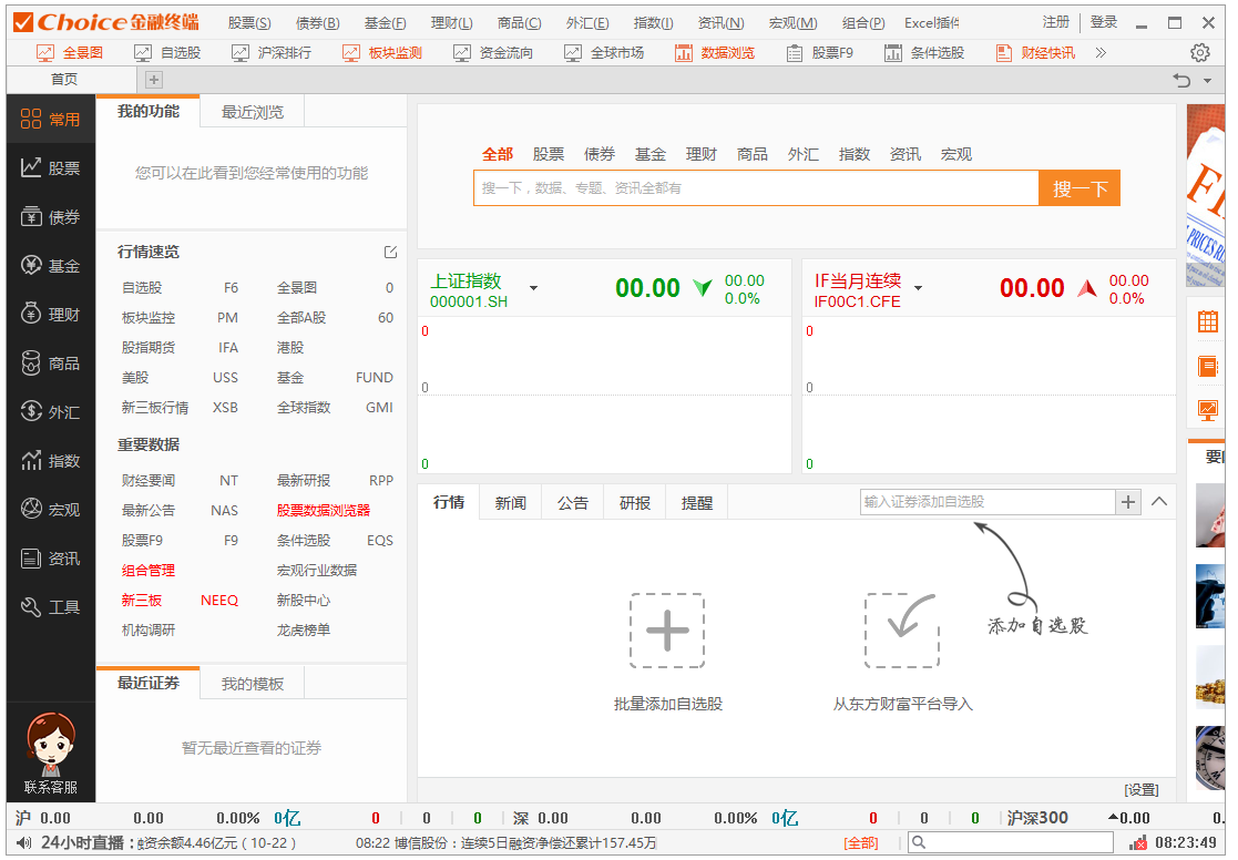 Choice金融終端是一款由東方財(cái)富信息有限公司推出適用于炒股人員使用的一款專業(yè)炒股軟件,內(nèi)置完美的數(shù)據(jù)統(tǒng)計(jì)分析功能,實(shí)時(shí)更新股市行情,方便用戶看股、買股,幫助股民做出正確投資決策,幫你在滬深、新股、新三板、港股中篩選出最佳股票。Choice金融終端包含了行情報(bào)價(jià)、多維數(shù)據(jù)、專題統(tǒng)計(jì)、新聞資訊、研究報(bào)告、常用金融模型與應(yīng)用等工具,是你非常不錯(cuò)的炒股軟件!