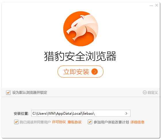 下載獵豹瀏覽器,解壓壓縮包,雙擊.exe文件,彈出界面,立即安裝;