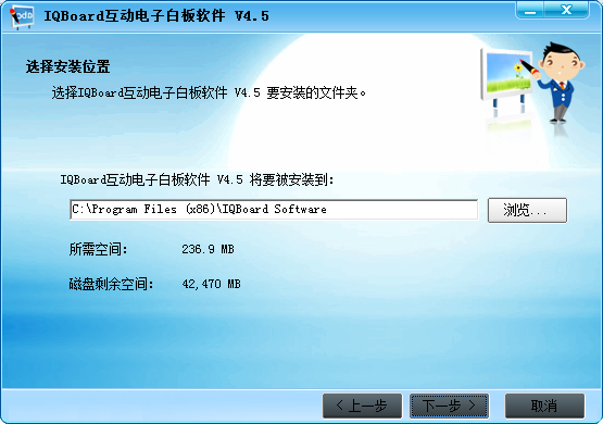 選擇IQBoar互動(dòng)電子白板軟件V4.5要安裝的文件夾。