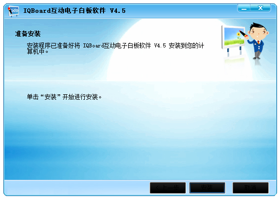 宏裝程序已準(zhǔn)備好將IQBoar d互動(dòng)電子白板軟件V4. 5安裝到您的計(jì)算機(jī)中。