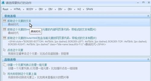 6、之后會出現(xiàn)一個(gè)選擇對話框,這里我們選擇‘提取這個(gè)元素的文本’
