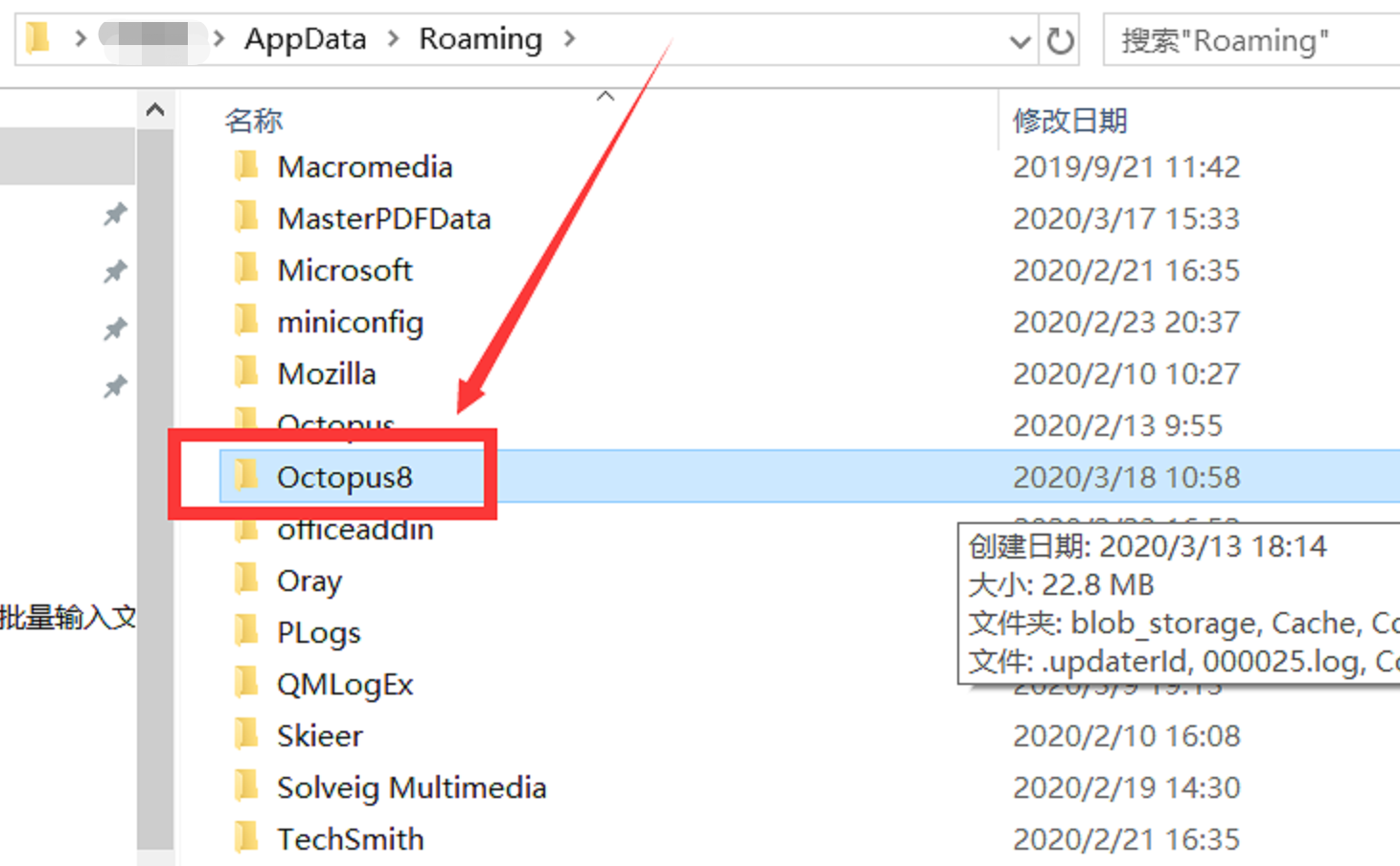 解決方法 :刪除八爪魚緩存文件夾。找到\AppData\Roaming\Octopus8 文件夾,將Octopus8 文件夾刪除。