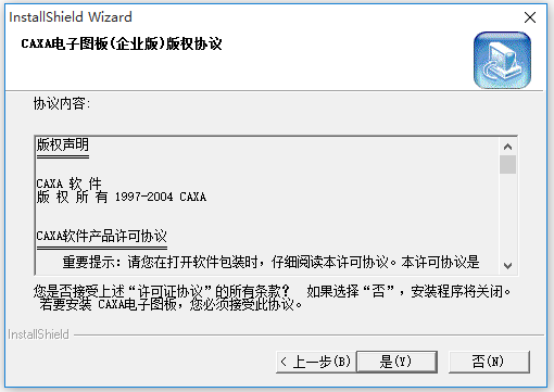 您是否接受上述“許可證協(xié)議協(xié)”的所有條款?如果選擇“否, 安裝程序?qū)㈥P(guān)閉。若要安裝CAXA電子圖版,您必須接受此協(xié)議。