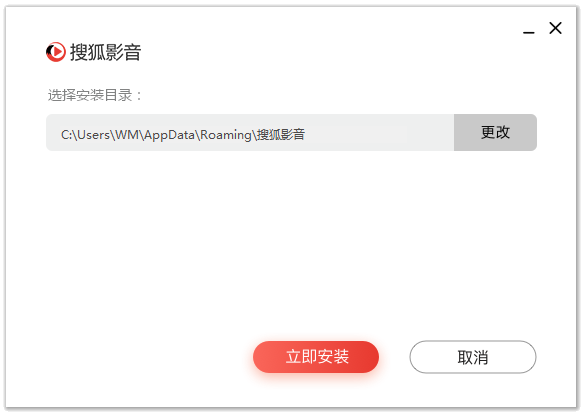 C:\Users\WM\AppData\Roaming\搜狐影音,點(diǎn)擊【立即安裝】,