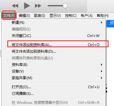 1.打開itunes軟件,打開軟件后,點擊菜單欄的【文件】,在彈出的選項中選擇【將文件添加到資料庫】,然后找到您要制作鈴聲的文件。