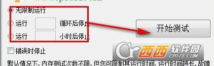 2、設(shè)置運(yùn)行時(shí)間,運(yùn)行循環(huán)后停止、運(yùn)行小時(shí)后停止等選項(xiàng),設(shè)置完成后點(diǎn)擊【開始測試】;