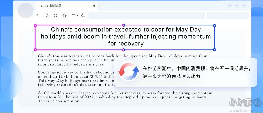 使用2345加速瀏覽器,您可以輕松應(yīng)對各種語言場景,支持網(wǎng)頁一鍵翻譯和劃詞翻譯,讓您的溝通更加便捷無憂。