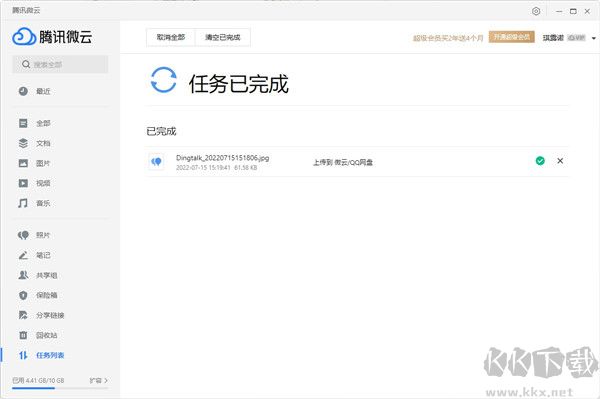 在微云主界面右側(cè),您可以實時查看網(wǎng)盤已用容量數(shù)據(jù),以及當前正在處理的同步任務(wù)詳情。