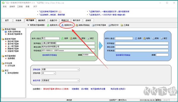 內(nèi)置聯(lián)系人數(shù)據(jù)庫,可存儲(chǔ)并快速調(diào)用收發(fā)貨人完整信息。