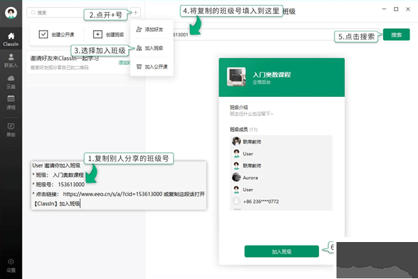 使用方法:首先登陸ClassIn,然后在其他軟件(例如:QQ / 電腦微信)中復(fù)制老師發(fā)送的In口令,之后再次回到已登陸的ClassIn窗口中,會(huì)自動(dòng)彈出報(bào)名窗口,點(diǎn)擊“加入班級(jí)”即可