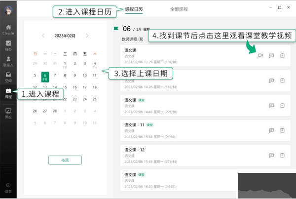1、在課程日歷上可以查看所有可成,點(diǎn)擊回放圖標(biāo)即可觀看已經(jīng)錄課的課堂視頻,支持倍速播放,切換觀看視角和選段觀看