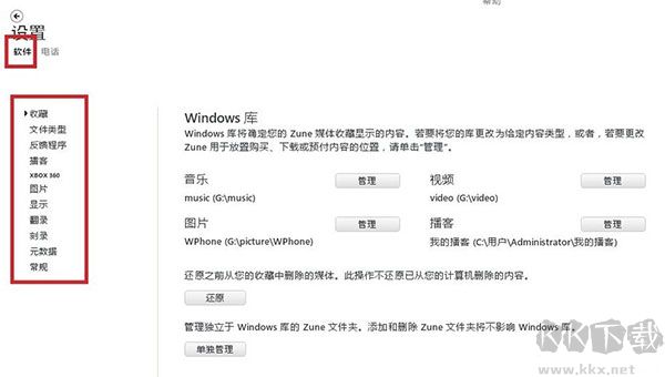 7、“圖片和視頻”,在這里可以設(shè)置電腦端保存圖片的位置,之后Zune啟動(dòng)時(shí),會(huì)根據(jù)這個(gè)目錄自動(dòng)檢測(cè)與手機(jī)端是否圖片視頻同步,如圖