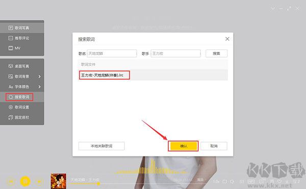 您可以在歌曲播放頁面中左側(cè)浮層中選擇搜索歌詞來匹配和切換到正確的歌詞。