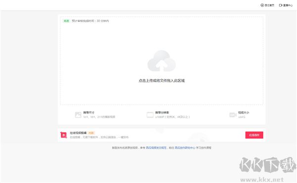 4、最后將需要發(fā)布的視頻上傳或拖曳至制定區(qū)域進(jìn)行審核即可。