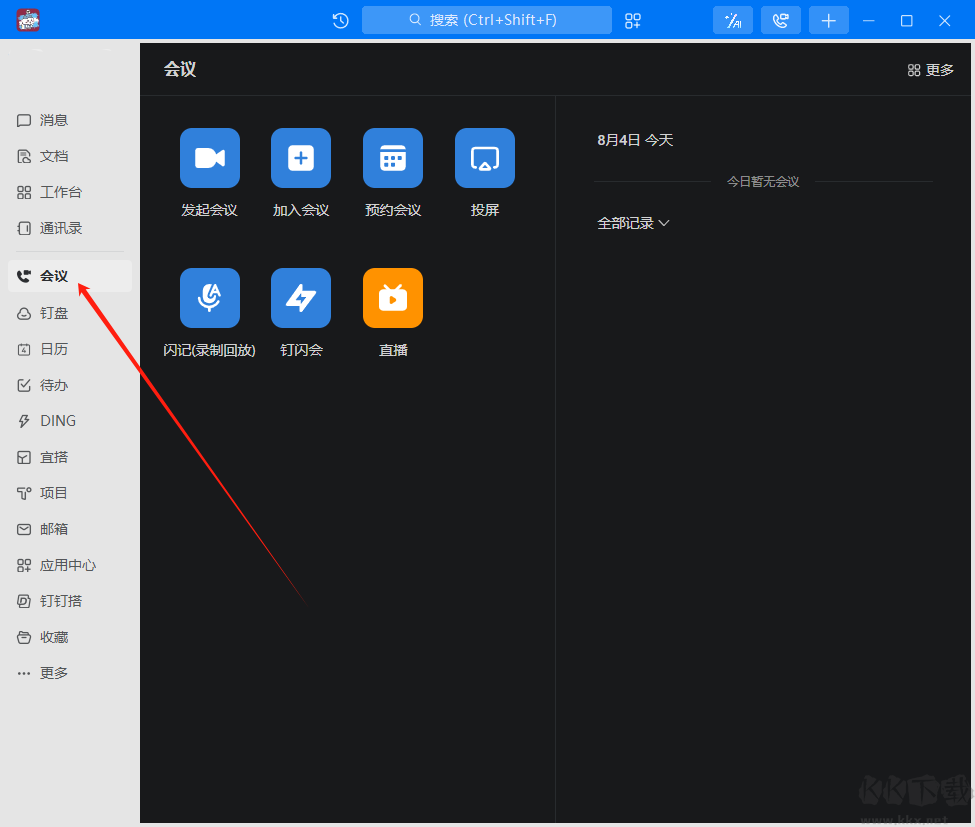 打開釘釘電腦版并登錄,直接點(diǎn)擊發(fā)起會(huì)議。