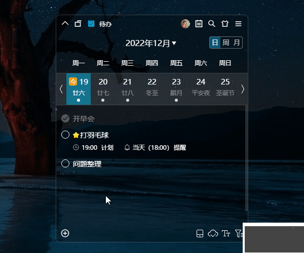 月視圖下創(chuàng)建待辦時(shí),雙擊任意日期,即可創(chuàng)建新的待辦?;蛘呤菃螕暨x中任意日期后,點(diǎn)擊左下角的“+”來創(chuàng)建待辦。