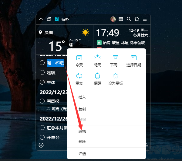 若需要編輯待辦內(nèi)容時(shí),直接雙擊該待辦或者是右鍵單擊該待辦,再點(diǎn)擊“編輯”即可。