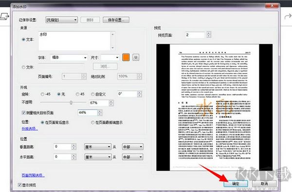 4、PDF添加水印之后,點擊右下角的“確定”按鈕。返回主界面可以看到水印效果。之后,選擇“文件”下的“保存”或“另存為”將文件保存在電腦上。