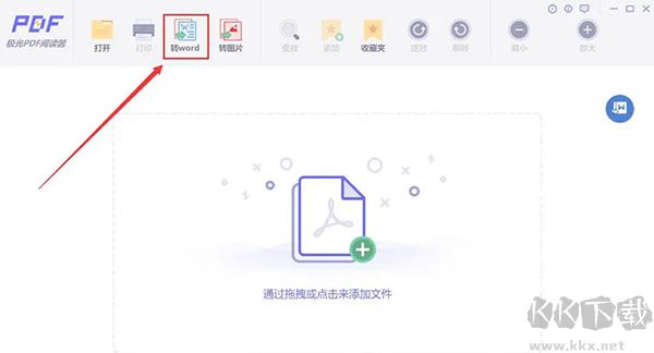 1、首先,我們打開極光PDF閱讀器,在其向?qū)ы撁嬷?,點(diǎn)擊頂部功能欄中的“轉(zhuǎn)word”選項(xiàng)。