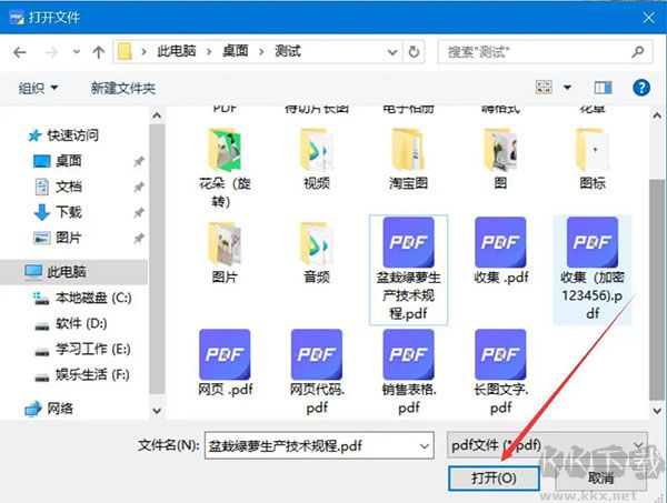 3、在彈出的窗口中,將需要提取頁面的PDF文件選中,并點(diǎn)擊“打開”按鈕,將其導(dǎo)入極光PDF閱讀器。