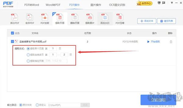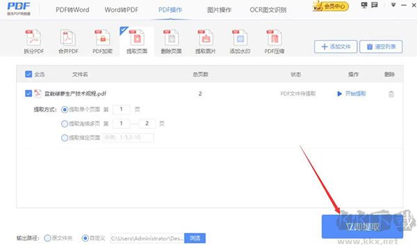 7、最后,我們點(diǎn)擊界面右下方的“立即提取”按鈕,極光PDF閱讀器便開始提取PDF頁面。