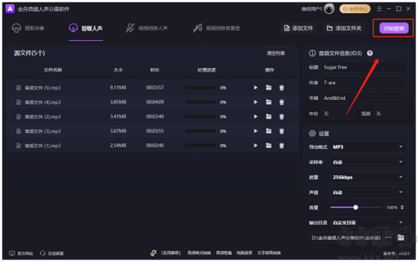 支持多文件同時進(jìn)行人聲/伴奏分離操作,大幅提升音頻處理效率。
