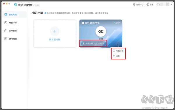 5、在此界面還可以看到當(dāng)前云電腦的到期時(shí)間,云電腦的配置信息,點(diǎn)擊續(xù)費(fèi),可以續(xù)費(fèi)云電腦