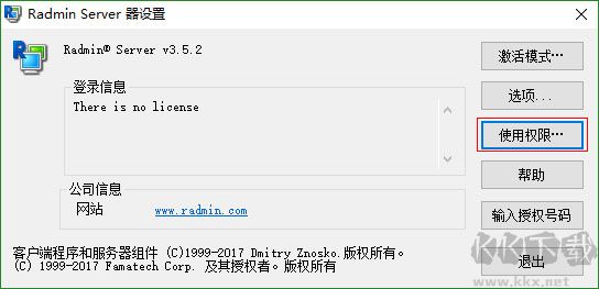2、安裝好后,進(jìn)行配置 Radmin Server 服務(wù)器,點(diǎn)擊“使用權(quán)限”