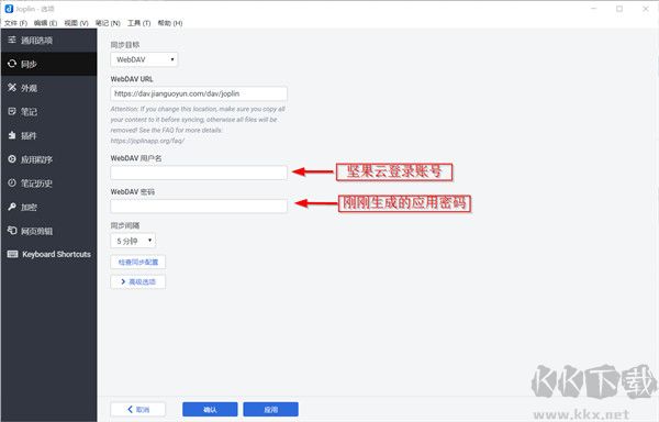 Joplin與堅果云同步配置
