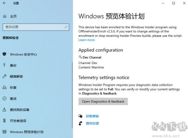 5、加入體驗(yàn)計(jì)劃:進(jìn)入“設(shè)置 -> Windows 預(yù)覽體驗(yàn)計(jì)劃”,確認(rèn)已加入,確保能收到更新。