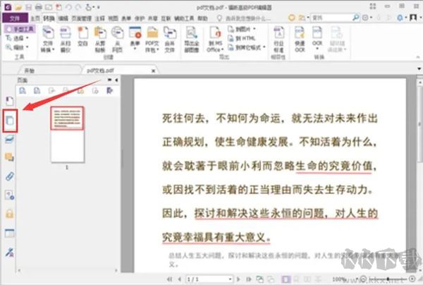 2、然后,點(diǎn)擊福昕高級(jí) PDF 編輯器左側(cè)的“查看頁(yè)面縮略圖”工具圖標(biāo)。