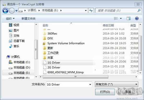 2、選擇我們剛創(chuàng)建的加密卷文件1G Driver,如下圖所示: